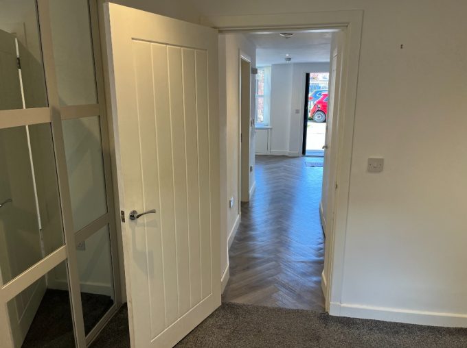 A welcoming hallway provides access to all rooms and includes a large walk-in storage cupboard, offering excellent additional space.