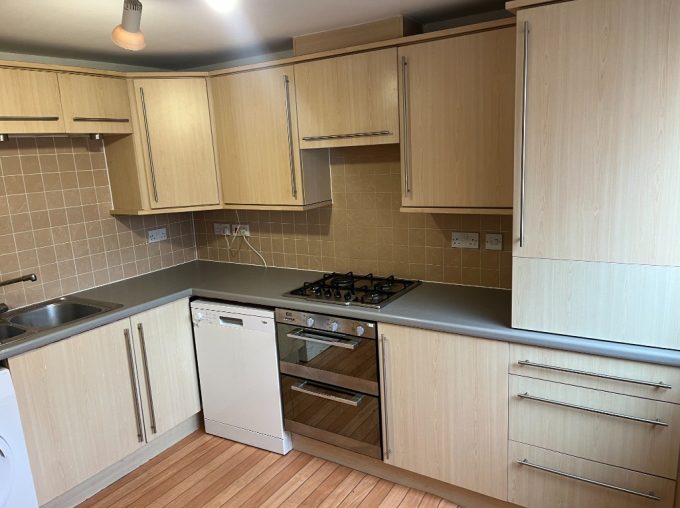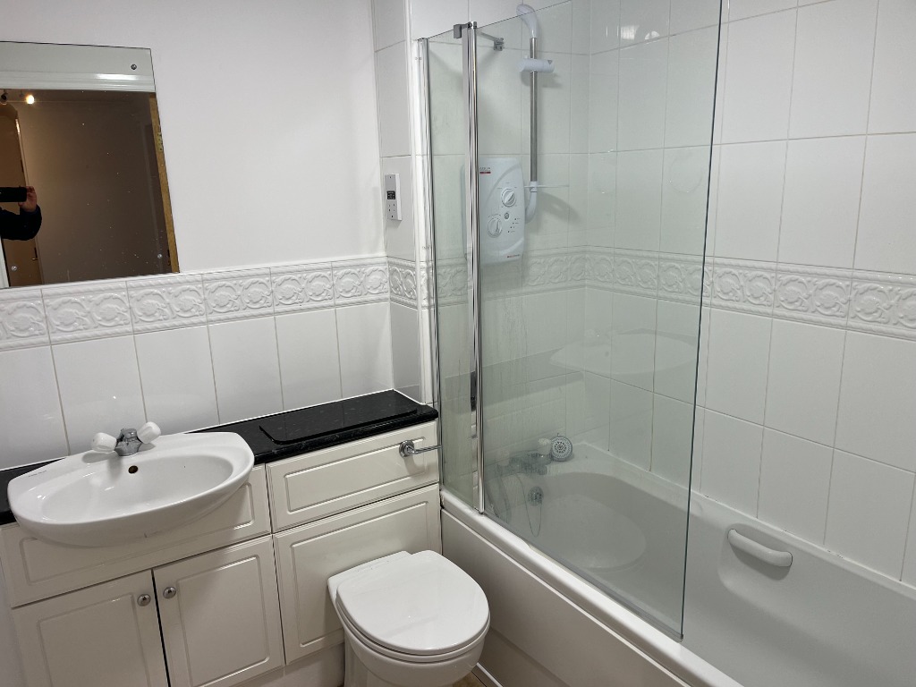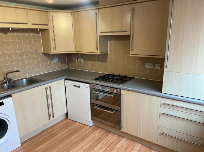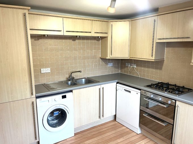 Leading from the lounge is the modern fitted kitchen, featuring sleek units and a range of integrated appliances, providing both style and practicality. There are two spacious double bedrooms, each benefiting from built-in wardrobes with sliding mirrored doors, offering excellent storage without compromising on floor space. The bathroom is finished to a modern standard and includes a bath with shower over, complete with a glazed shower screen.
