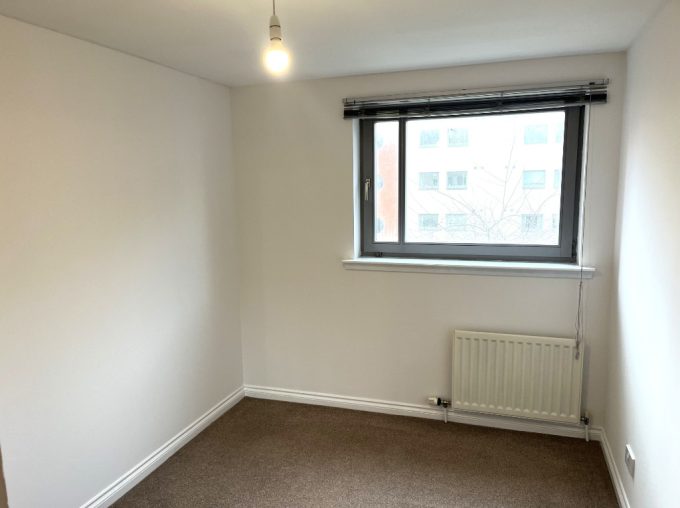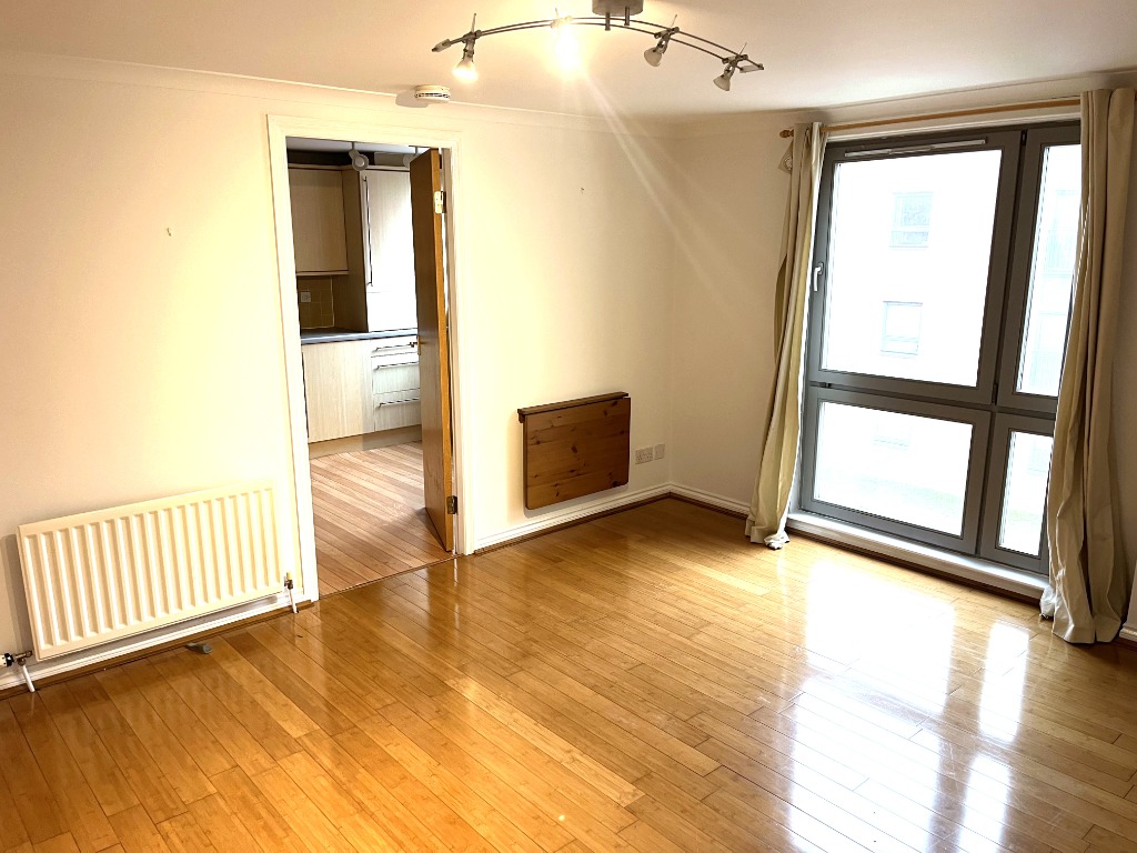 The apartment is accessed via a welcoming entrance hall, which provides access to all rooms and benefits from useful built-in storage. The lounge is generously proportioned and filled with natural light, enhanced by an impressive floor-to-ceiling window that creates a bright and inviting focal point. A recessed nook within the living area offers an ideal space for a home office or study area, while the contemporary, neutral flooring complements a wide range of furnishings.