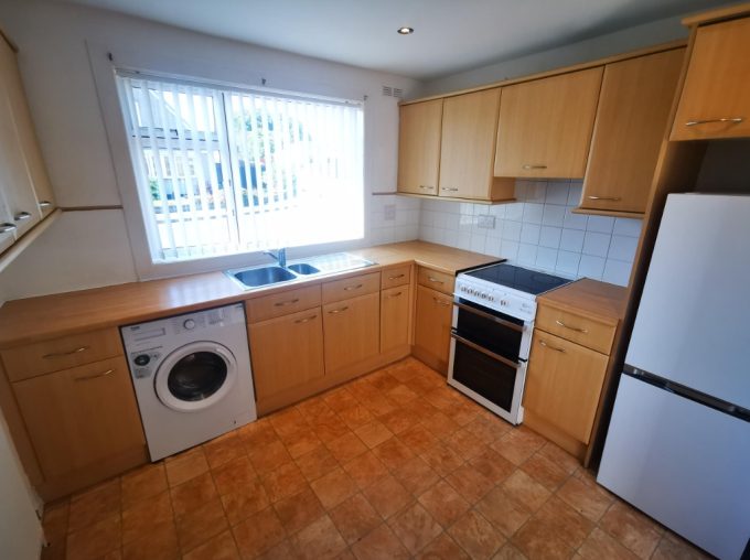 Large lounge, fitted kitchen with appliances including electric hob and oven, fridge/freezer and washing machine, two double bedrooms and bathroom.