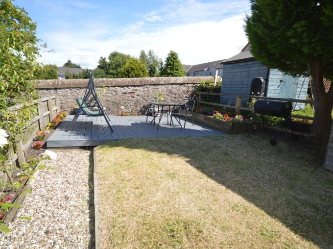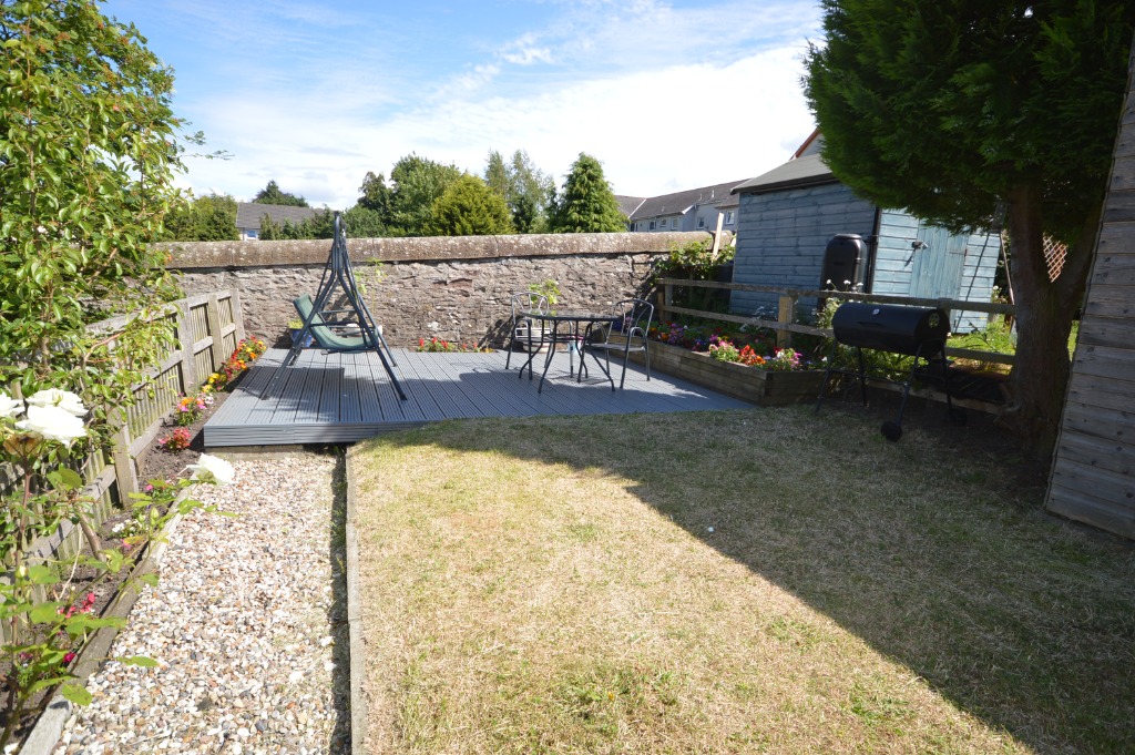 Separate private garden plot with secure shed and decking area—ideal for outdoor relaxation