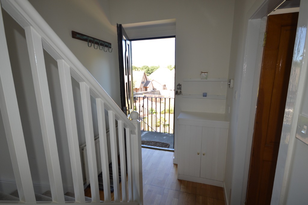 The property benefits from stylish wooden flooring throughout the lounge, hallway, and bathroom, with comfortable carpeting on the upper level.