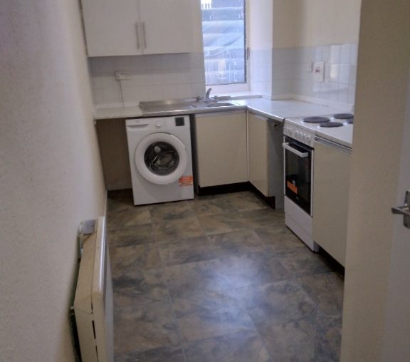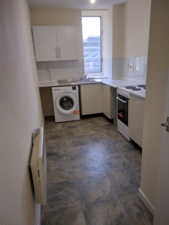 The accommodation comprises a large and bright lounge (approx. 4.1m x 3.0m), providing ample space for both living and dining. The spacious kitchen is well laid out and equipped with appliances, including a Bush electric oven and hob, Beko washing machine, and Fridgemaster fridge/freezer.