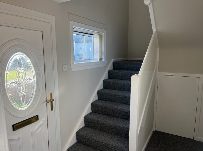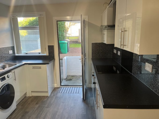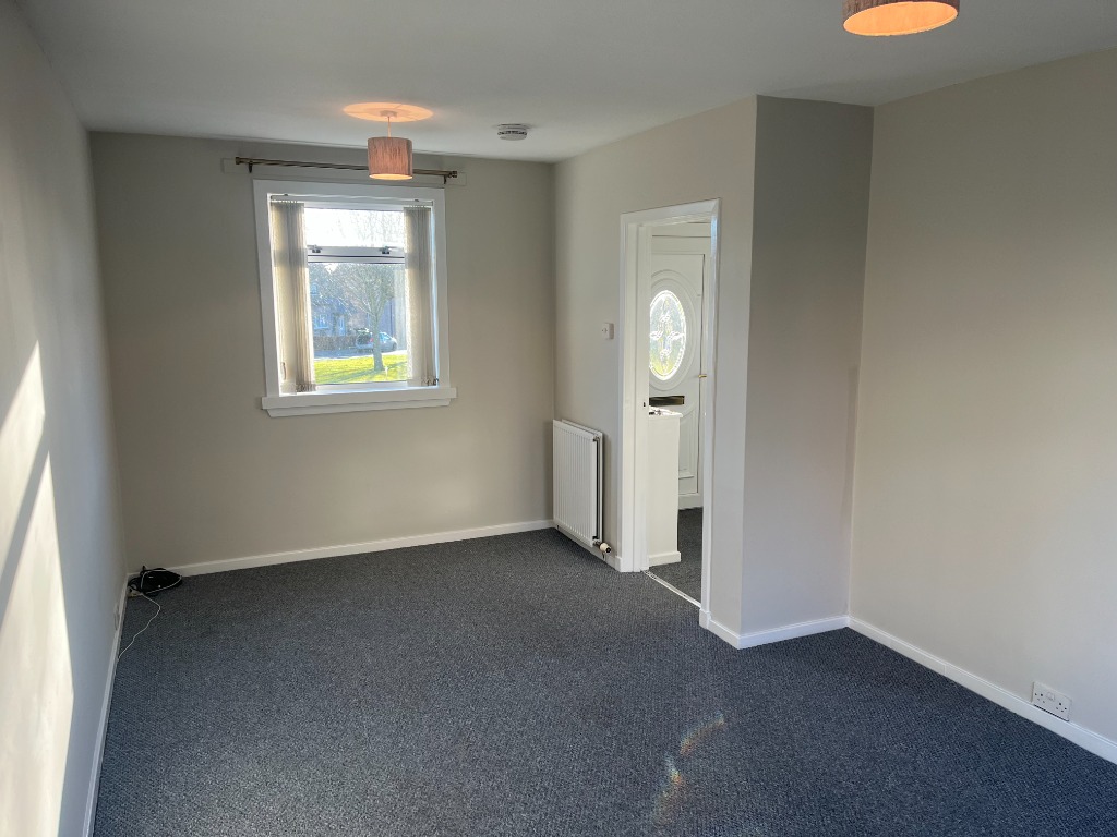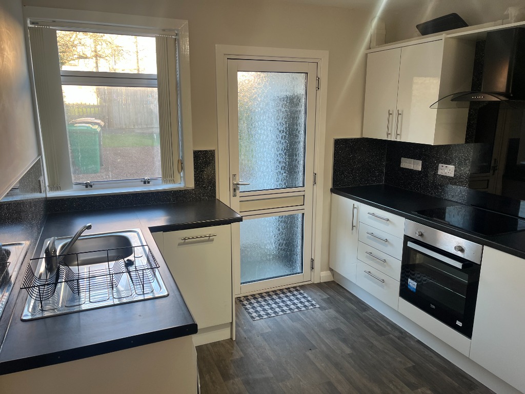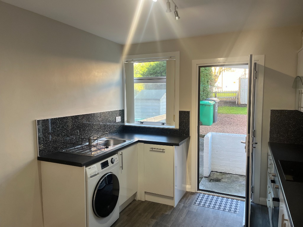 This lovely two-bedroom terraced house is situated in a quiet, well-established residential street in Tayport. South-facing to the rear, the property enjoys excellent natural light throughout the day and overlooks a pleasant green. With generous room sizes, modern amenities, and easily maintained gardens, it offers comfortable living in a peaceful setting. Ground Floor Entrance Hallway Welcoming hallway with fitted carpet and a large understair storage cupboard—ideal for coats, shoes, and household items. Spacious Lounge – 5.5m x 3.1m A bright, generously sized lounge featuring a small rear-facing bay window with a sunny south outlook over the green. Includes a glazed book rack with shelving and two sliding doors for additional display and storage. Fitted cream vertical blinds complete the room. Modern Kitchen A well-proportioned kitchen equipped with: Haier Hatruim washing machine Beko induction hob Beko electric oven A PVC door opens directly to the back garden for easy outdoor access. Upstairs Landing Carpeted stairs lead to a bright upper landing with a hallway cupboard housing the gas boiler. Bedroom 1 – 3.7m x 3.1m A large double bedroom with generous floor space and dark red curtains. Bedroom 2 – 3.4m x 2.8m Another large double bedroom featuring built-in louvred-door wardrobes offering excellent storage. Family Bathroom Modern bathroom with a shower over the bath, wet wall around the bath area, vinyl wall finish, and laminate flooring. Exterior Front Garden Attractive front garden with grass on both sides of a central path. Rear Garden Low-maintenance back garden with a gravel area, three drying poles with lines, and grass around the perimeter. Also includes a rear storage cupboard with a lock and double electric socket—ideal as a utility or hobby space. Please note all dimensions are approximate. No pets or smokers Girst months rent £1000 thereafter £900Council tax band: B, EPC rating: C Landlord Registration Number: 998118/250/18021. Letting Agent Registration Number: 1903015.
